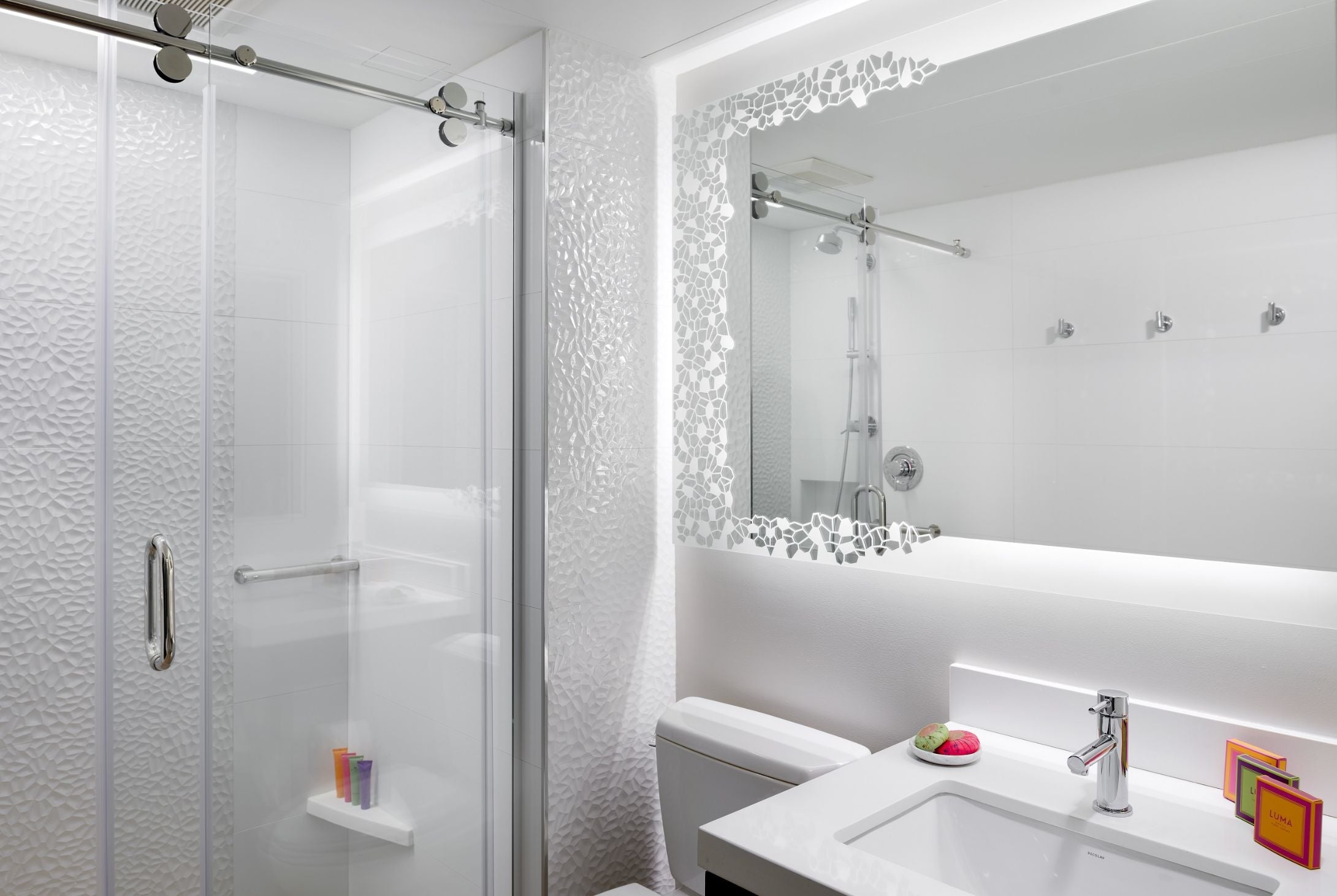 With Séura Lighted Mirrors, light evenly shines across the entire face, allowing you to apply makeup with precision without working around shadows. Replace or complement traditional above mirror lighting fixtures or sconces with a more modern wall mounted lighted mirror solution.