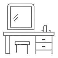 Caught in a moment of self-reflection, she sees something unexpected. Herself. Rested. Present. This is not the woman answering emails or wrangling logistics. This is the version of her that’s been hiding behind schedules and stress. And in this quiet moment gazing into a softly glowing mirror, she is relaxed and renewed.