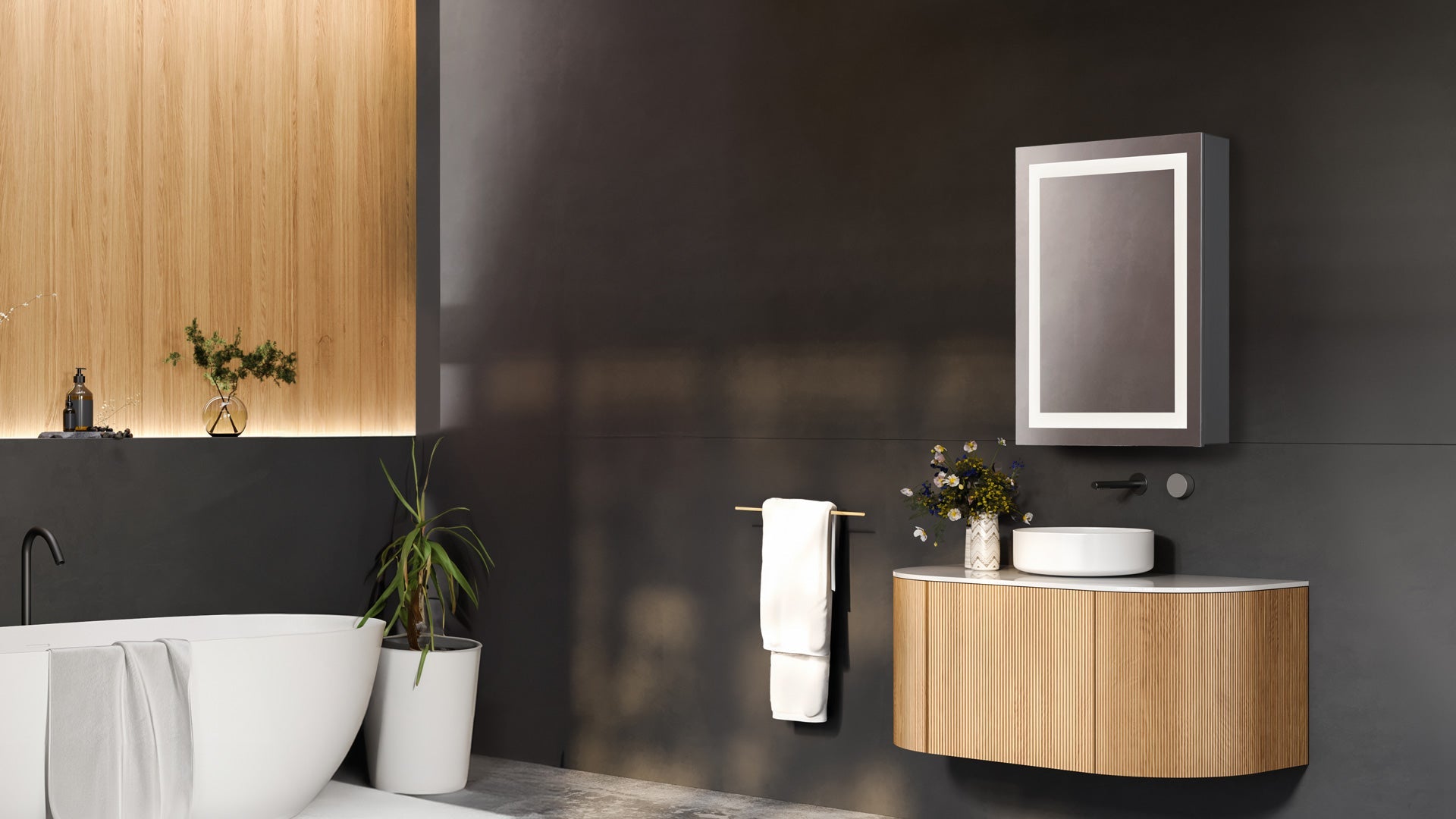 Alina's sleek frame of light illuminates the face evenly, eliminating shadows for a clear and flattering glow. With integrated task lighting, Alina not only elevates your daily routine but also doubles as a chic focal point, effortlessly blending with a range of interior styles.