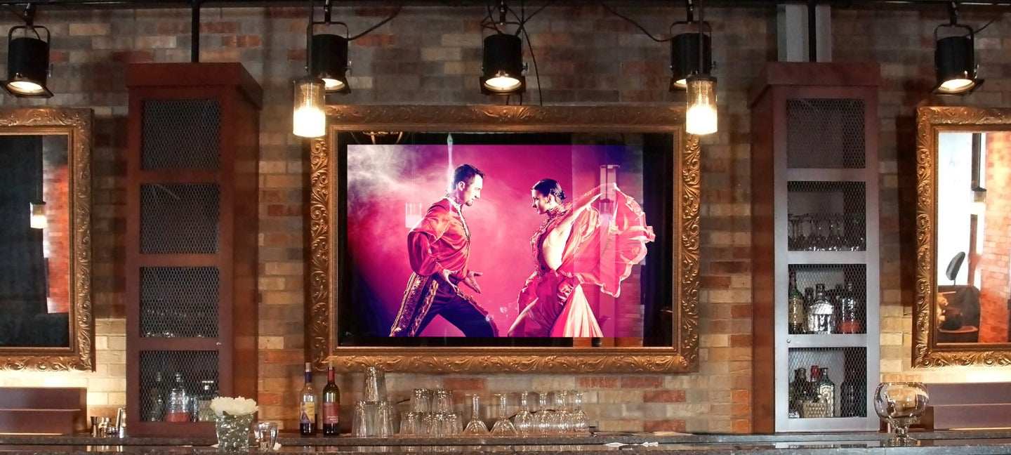 Séura Entertainment TV Mirrors are indistinguishable from a framed mirror when off, allowing you to design a room without having to worry about a clashing black rectangle on the wall.